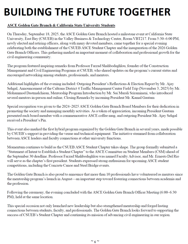 Do you want to stay up to date on everything happening in the ASCE San Francisco Section? Fill out the form below to stay in the know!